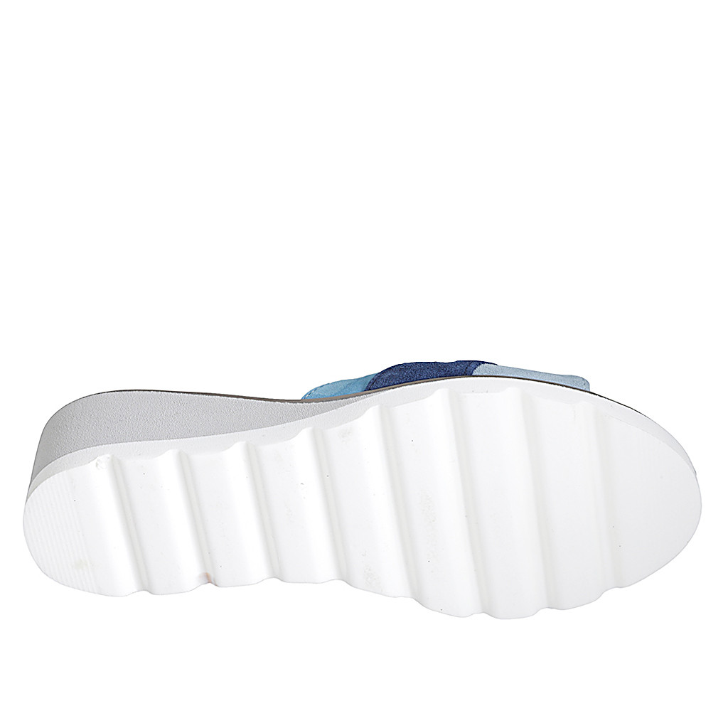 Woman's mule in light blue, blue grey and blue suede wedge heel 4