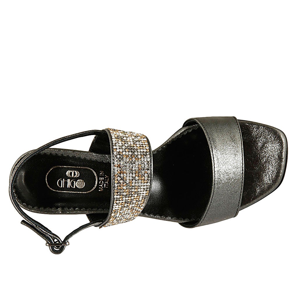 Sandalo da donna in pelle laminata grigia con strass colorati tacco 2 - Misure disponibili: 32, 33, 34, 42, 43, 44, 45, 46