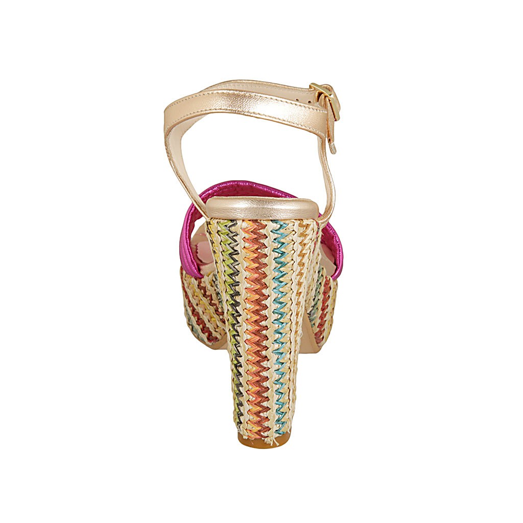 Sandalo con cinturino da donna con plateau in pelle laminata rame e fuchsia e tessuto multicolore tacco 12 - Misure disponibili: 31, 32, 33, 34, 42, 43, 44