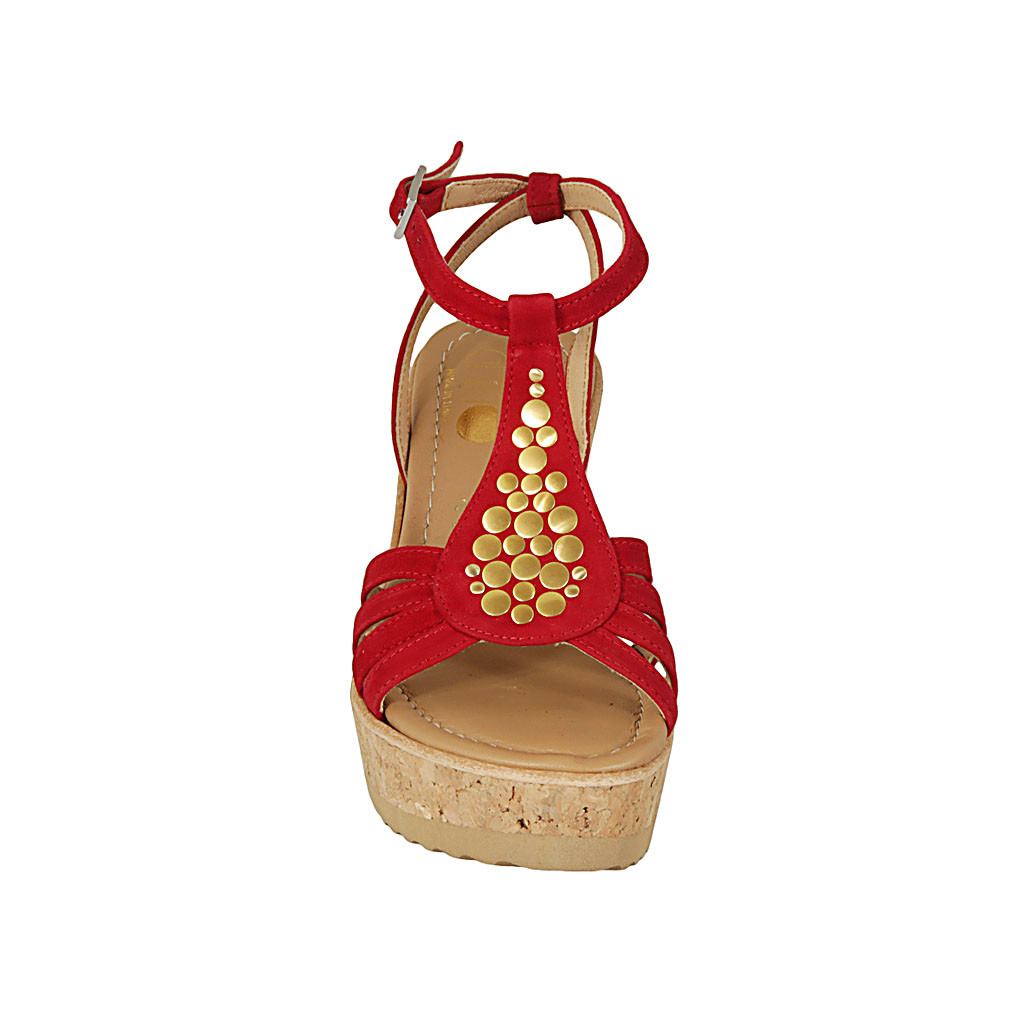 Женские сандали из красной замши с ремешком, заклепками платформа высота 10 нестандартные размеры