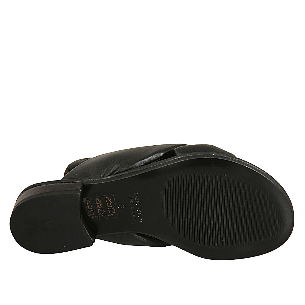 Woman's ankle boot with removable insole, buckle, elastic and zipper in black leather and laminated coal-colored leather heel 3