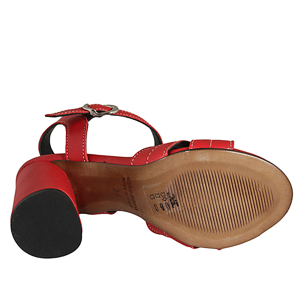 Woman's strap sandal in red leather heel 7