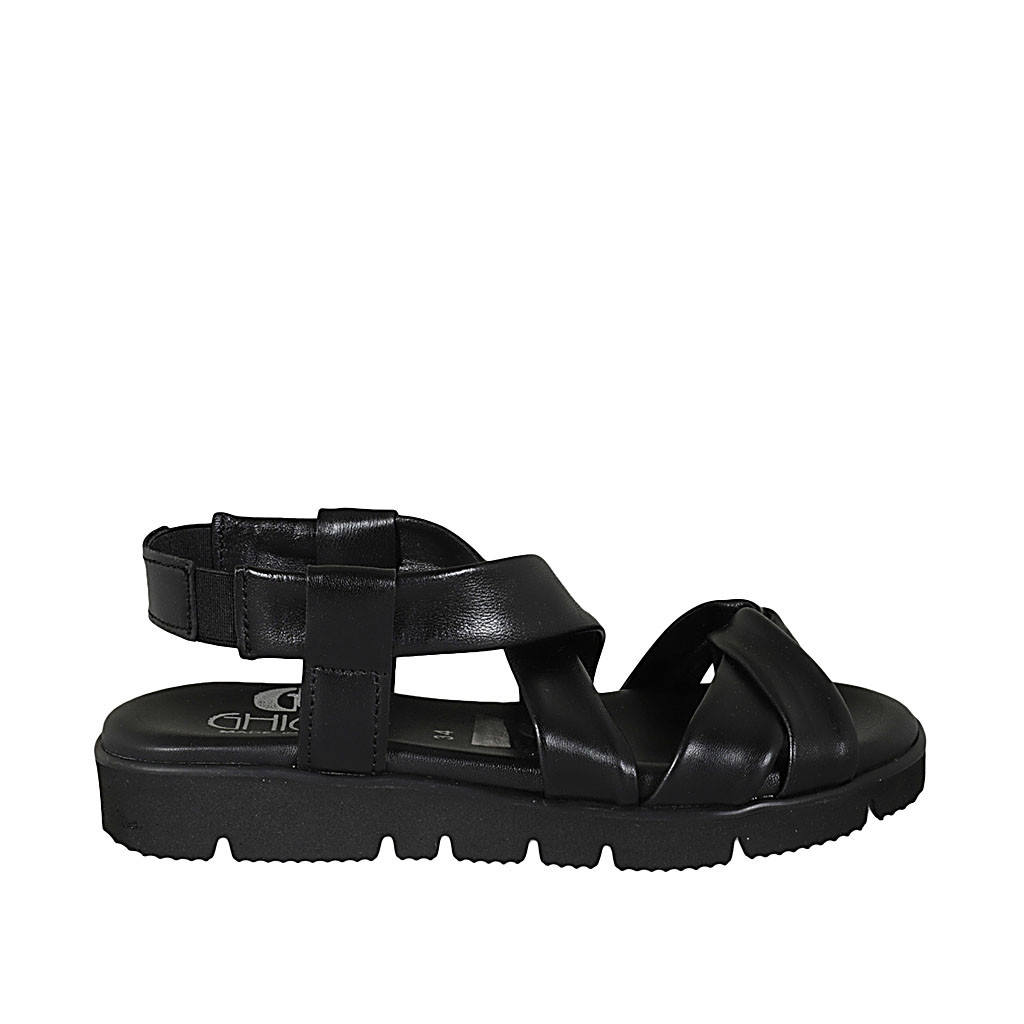 Woman's sandal in black leather with elastic band wedge heel 2