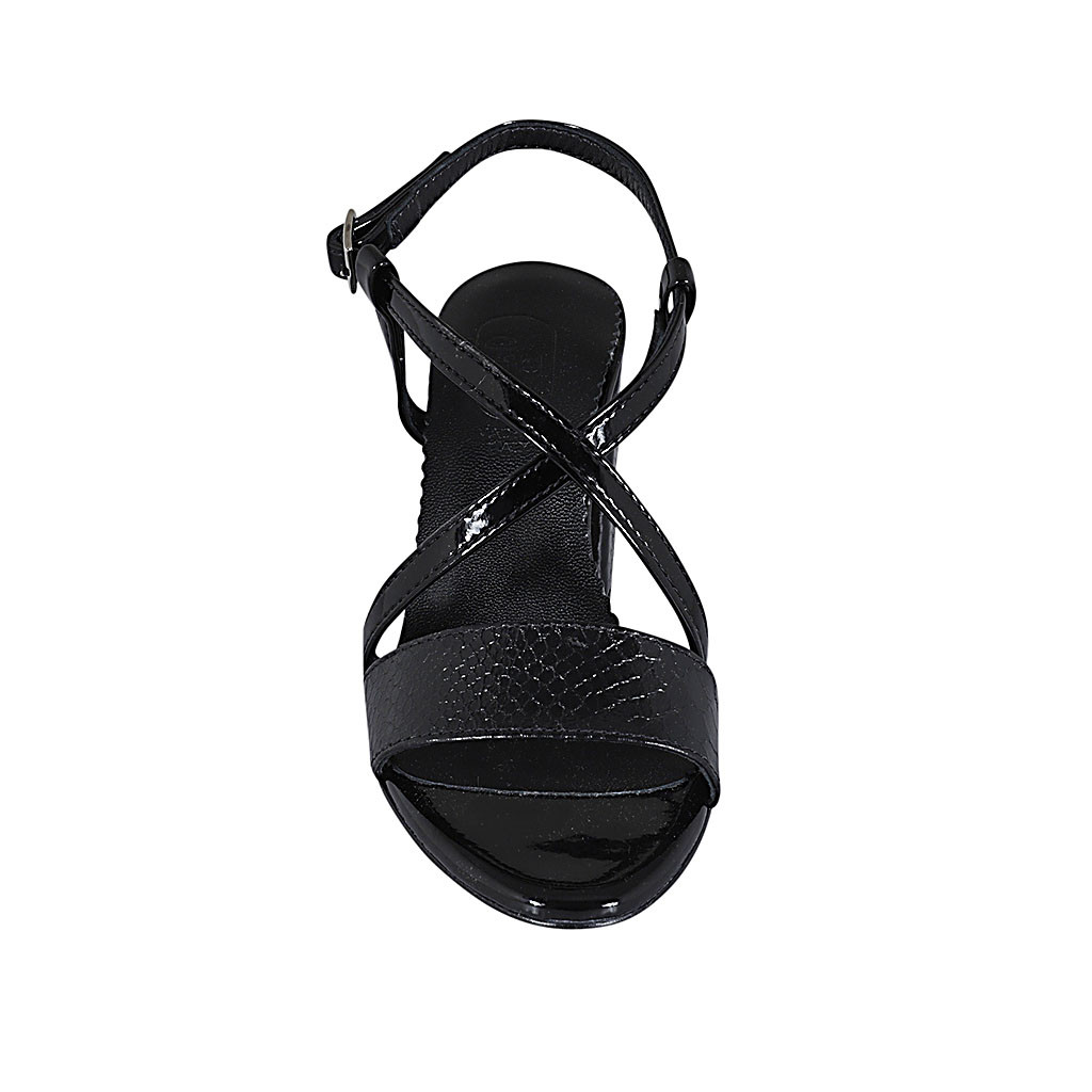 Woman's sandal in black printed patent leather heel 7