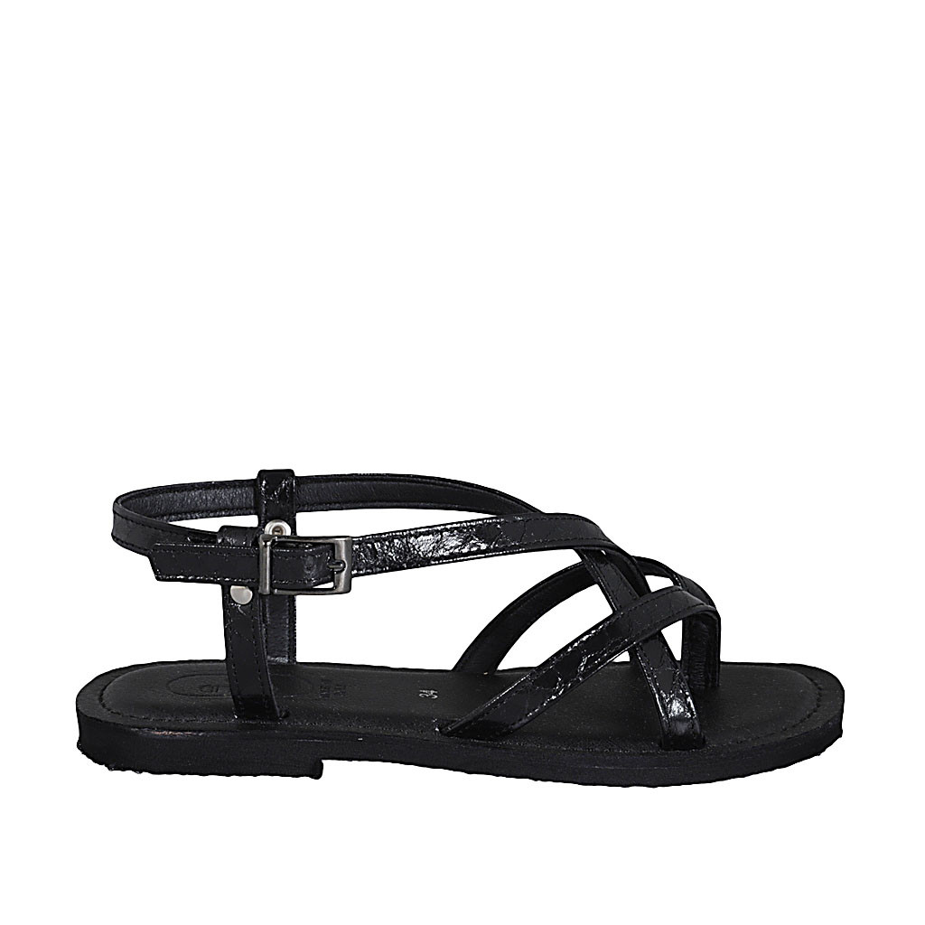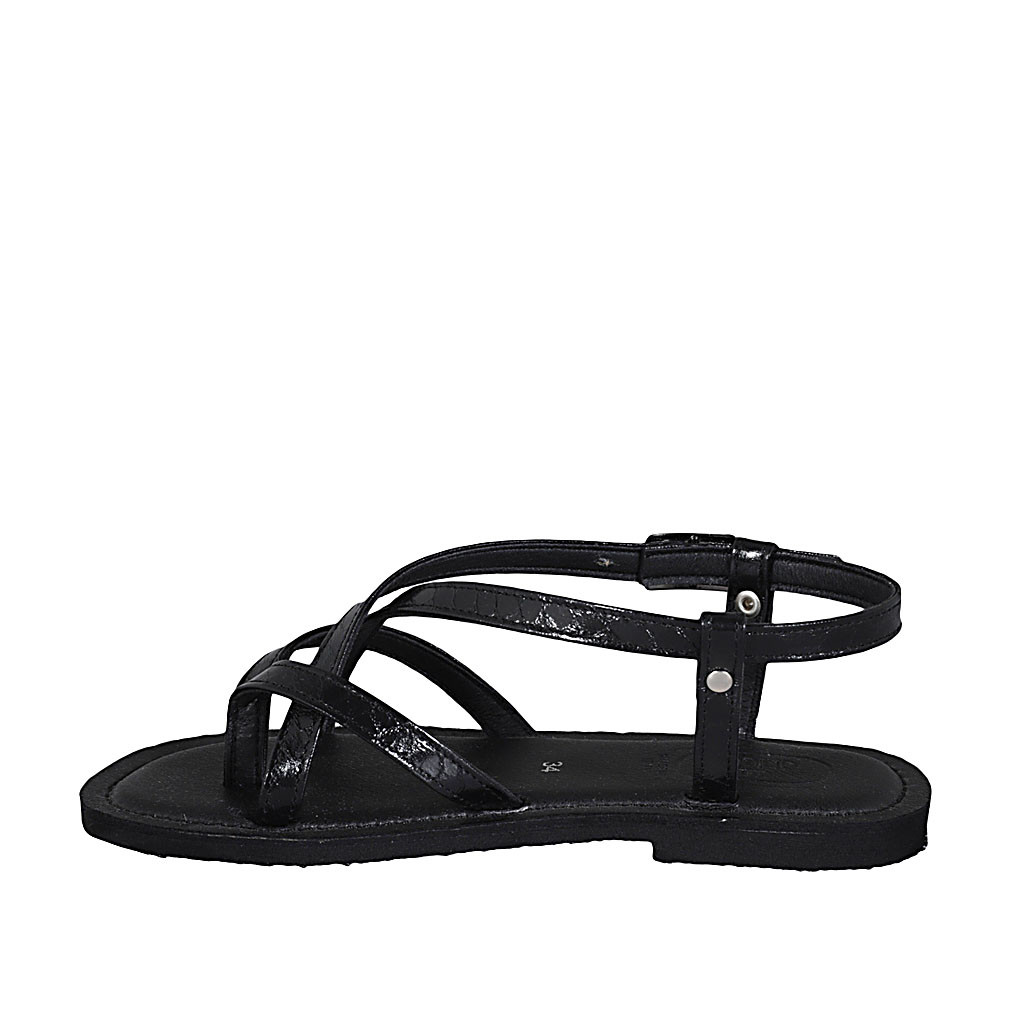 Woman's thong sandal with strap in platinum laminated printed leather heel 1