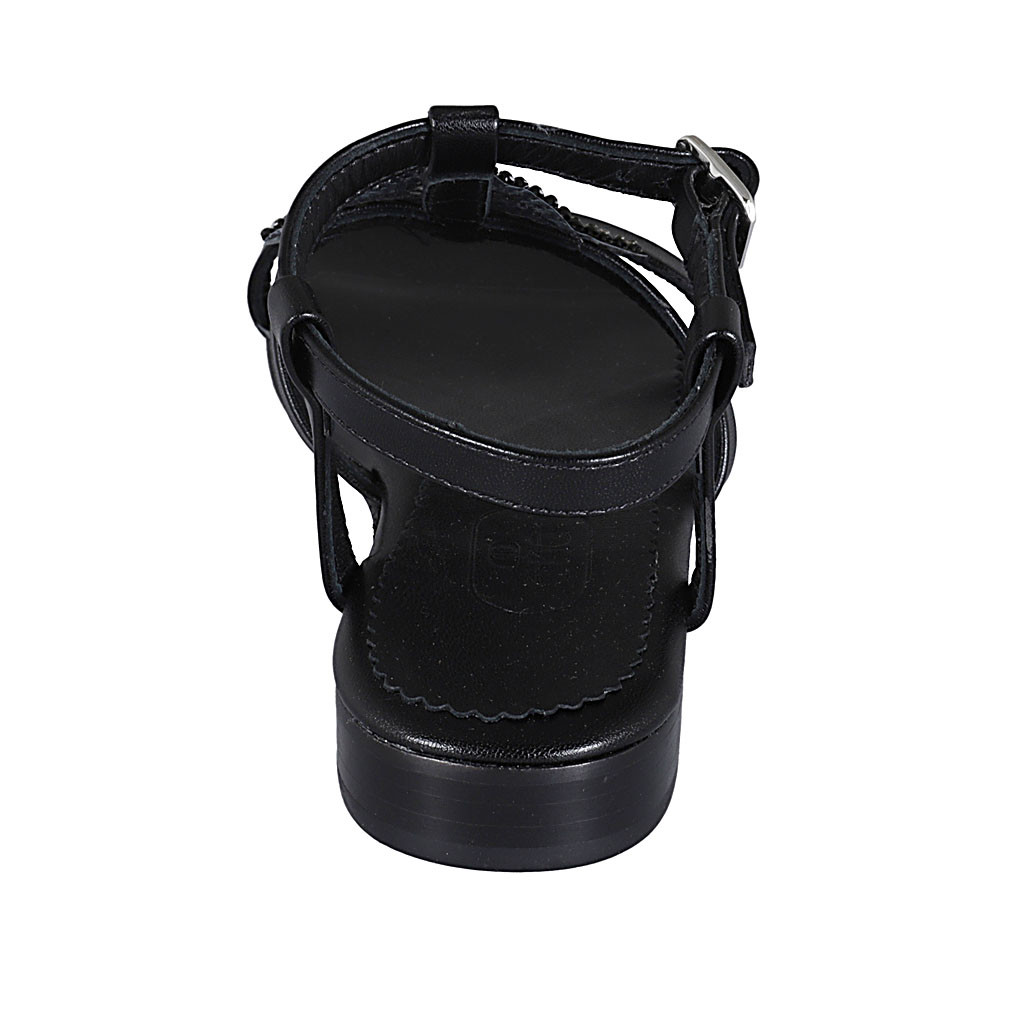 Woman's sandal in black leather with strap and rhinestones heel 2