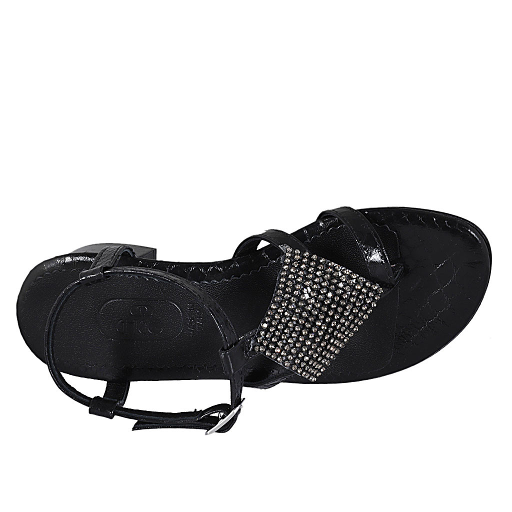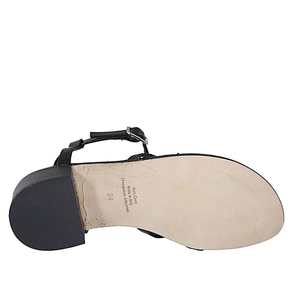Woman's sandal in laminated green, rose and copper leather heel 5