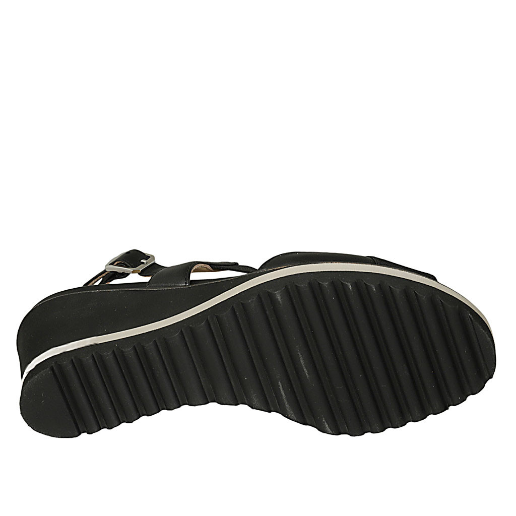 Woman's sandal in black leather with elastic band wedge heel 6