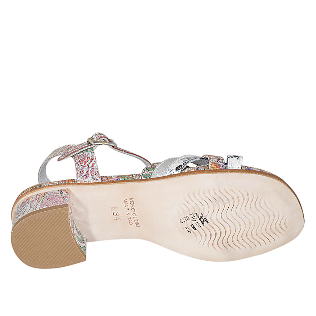 Woman's strap sandal in multicolored printed laminated leather heel 4