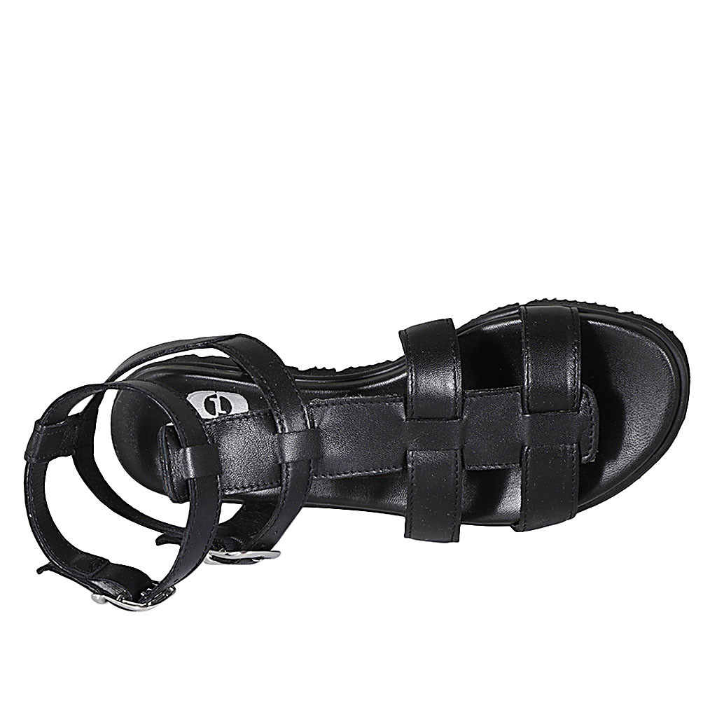 Woman's mules in black leather with velcro and removable insole with wedge heel 4