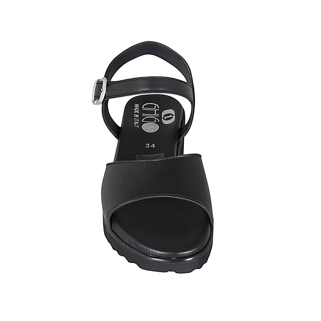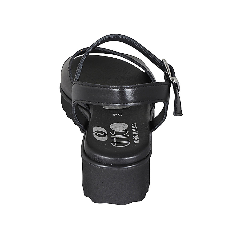 Woman's sandal in black leather with elastic band heel 2