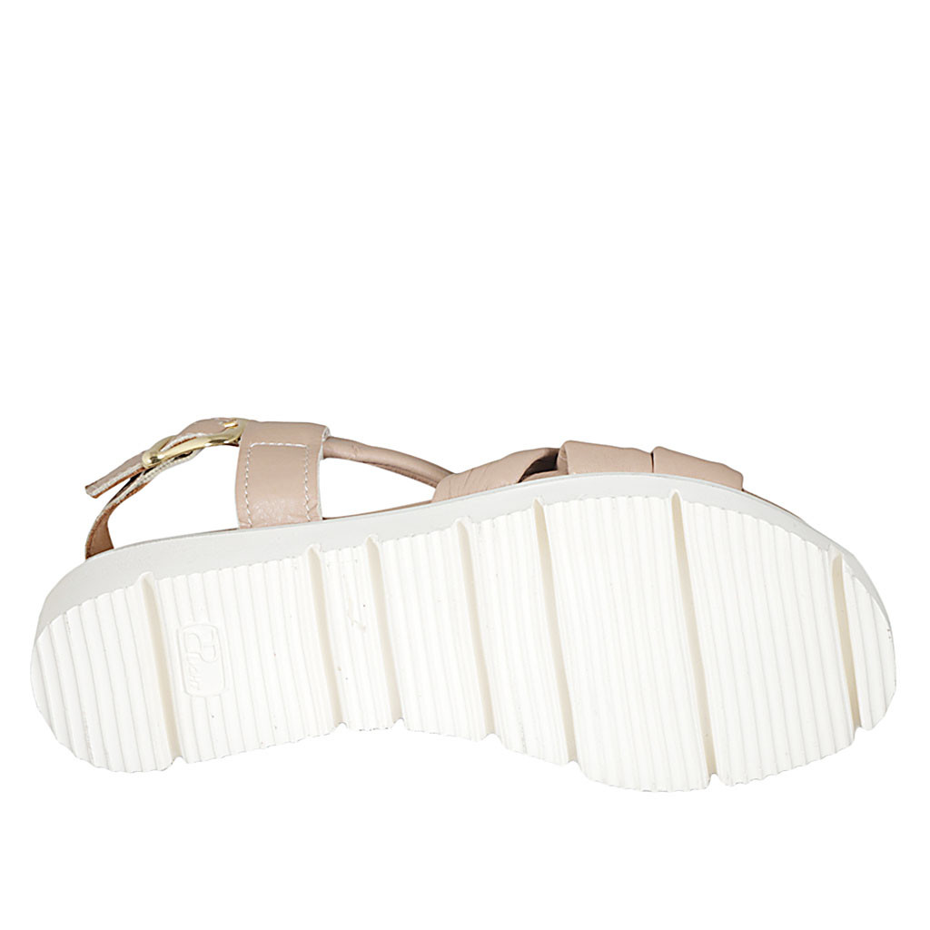 Woman's sandal with adjustable buckles in cognac brown leather heel 2