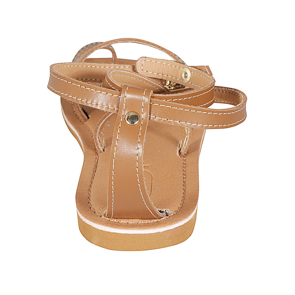 Woman's thong sandal with strap in cognac brown leather heel 1