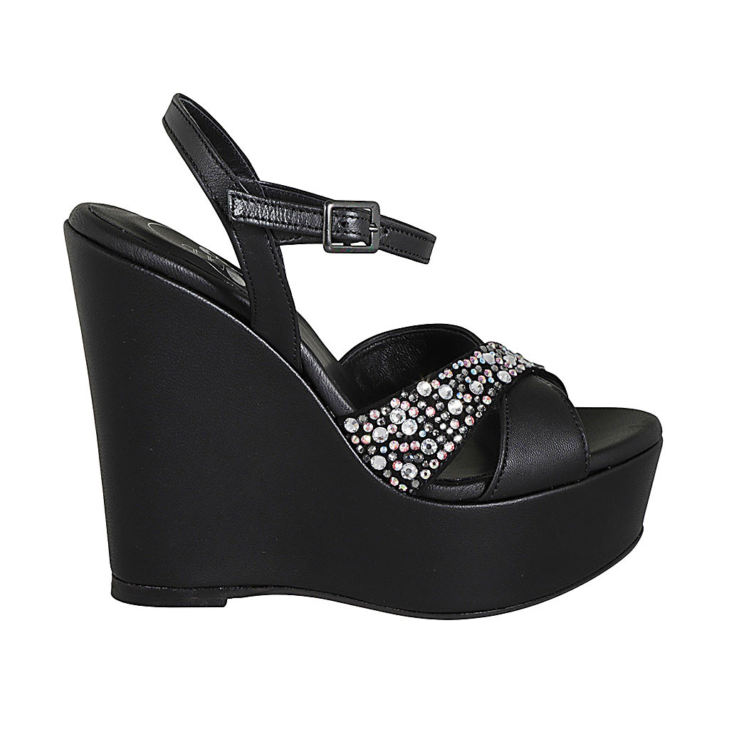 Woman's low ankle boot with buckle and zipper in black leather heel 7