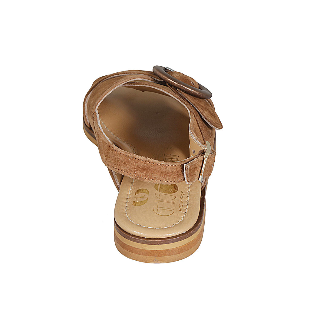 Men's laced derby shoe with Brogue decorations in taupe velour suede