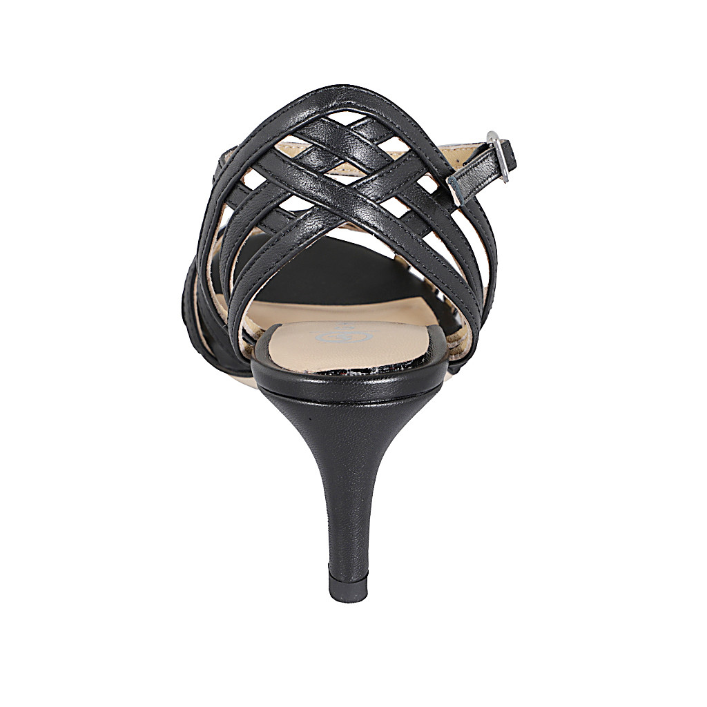Woman's boot with zipper and rounded tip in black stretch leather heel 7