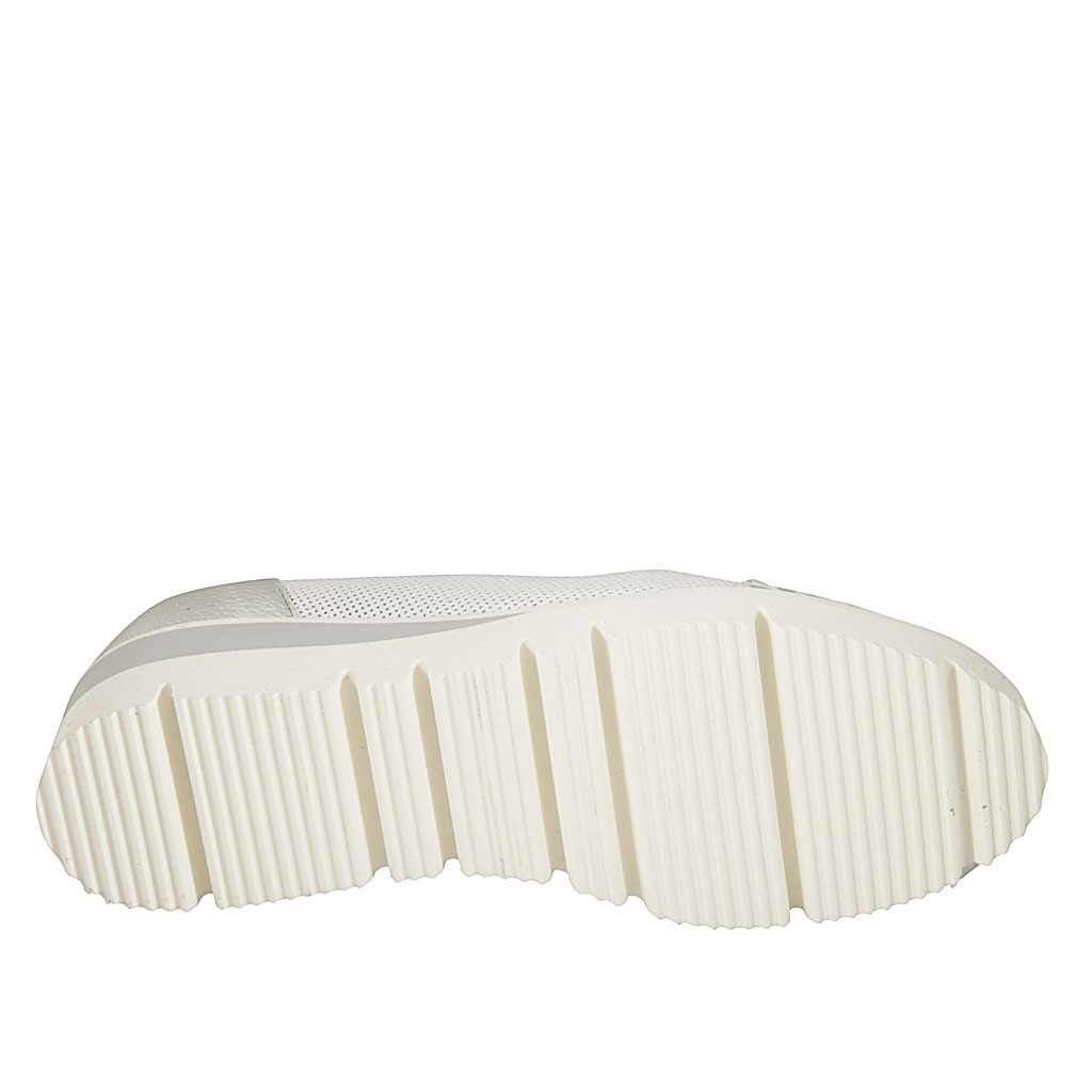 Женские сникерсы на шнурках с замками из белой и серебряной перфорированной кожи, платформа 3 нестандартные размеры