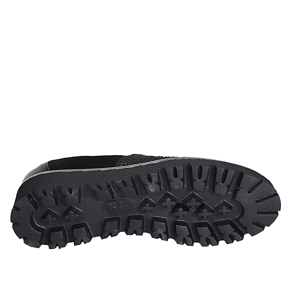 Woman's highfronted shoe with elastic bands in black leather and brush-off leather wedge heel 4