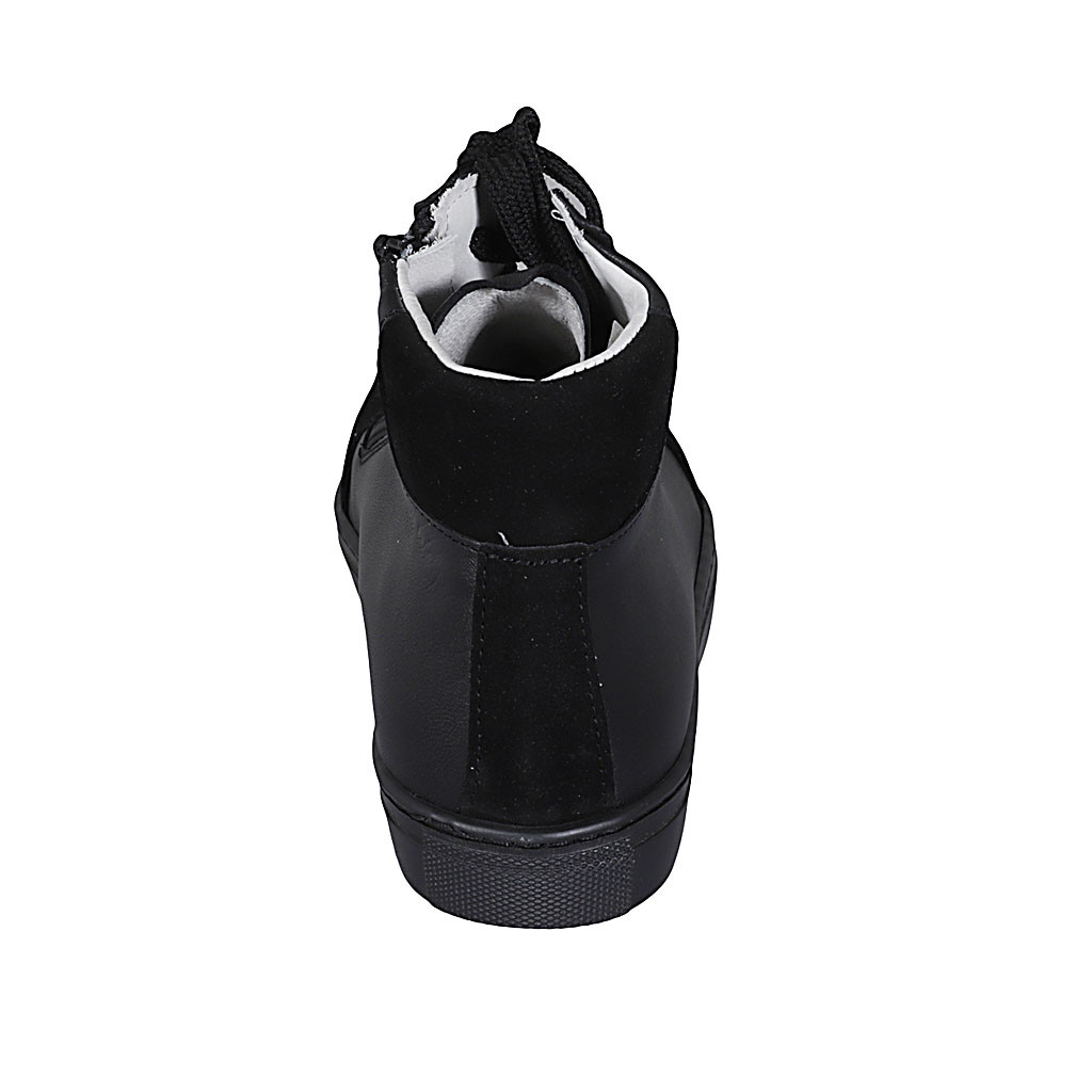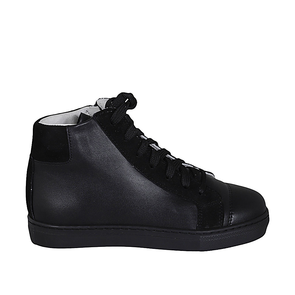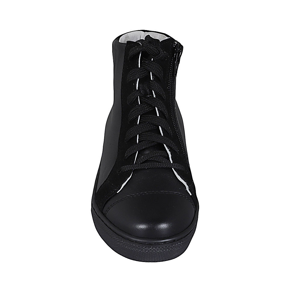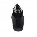 Woman's laced shoe in black leather and suede wedge heel 3