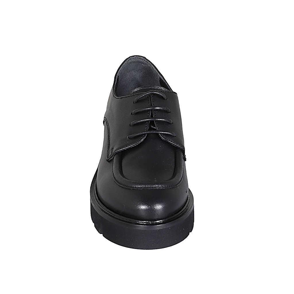 Woman's laced derby shoe in black leather with heel 3