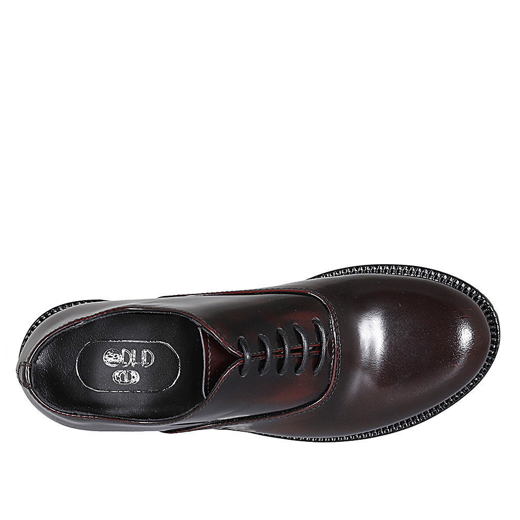 Woman's laced Oxford shoe in maroon brush-off leather heel 3