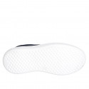 Woman's moccasin shoe with silver accessory and removable insole in black pierced leather and black patent leather wedge heel 4