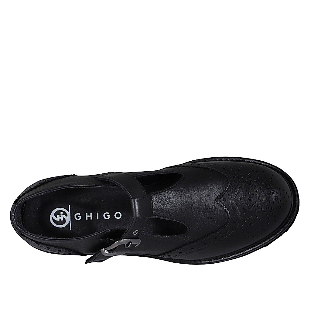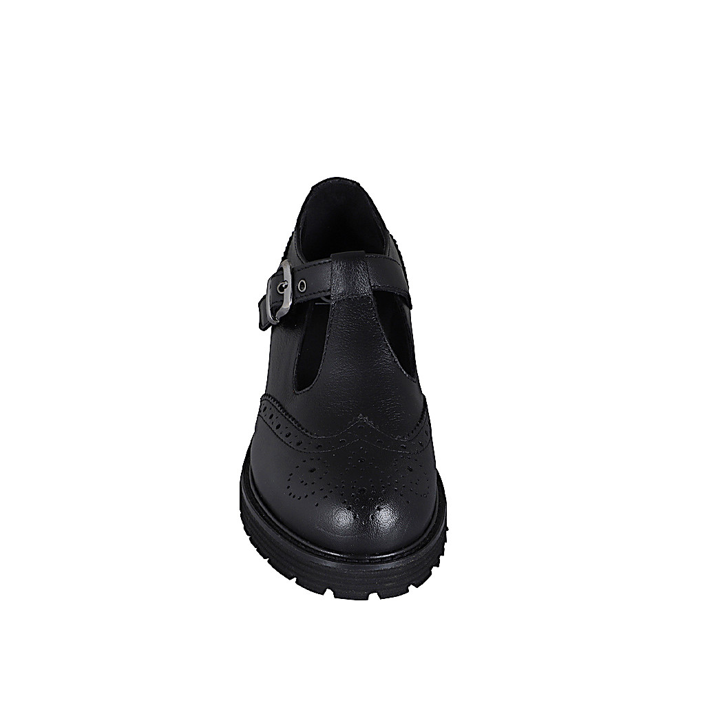 Woman's ankle-high boot with pointy toe and inner zip in black leather and black patent leather captoe heel 2