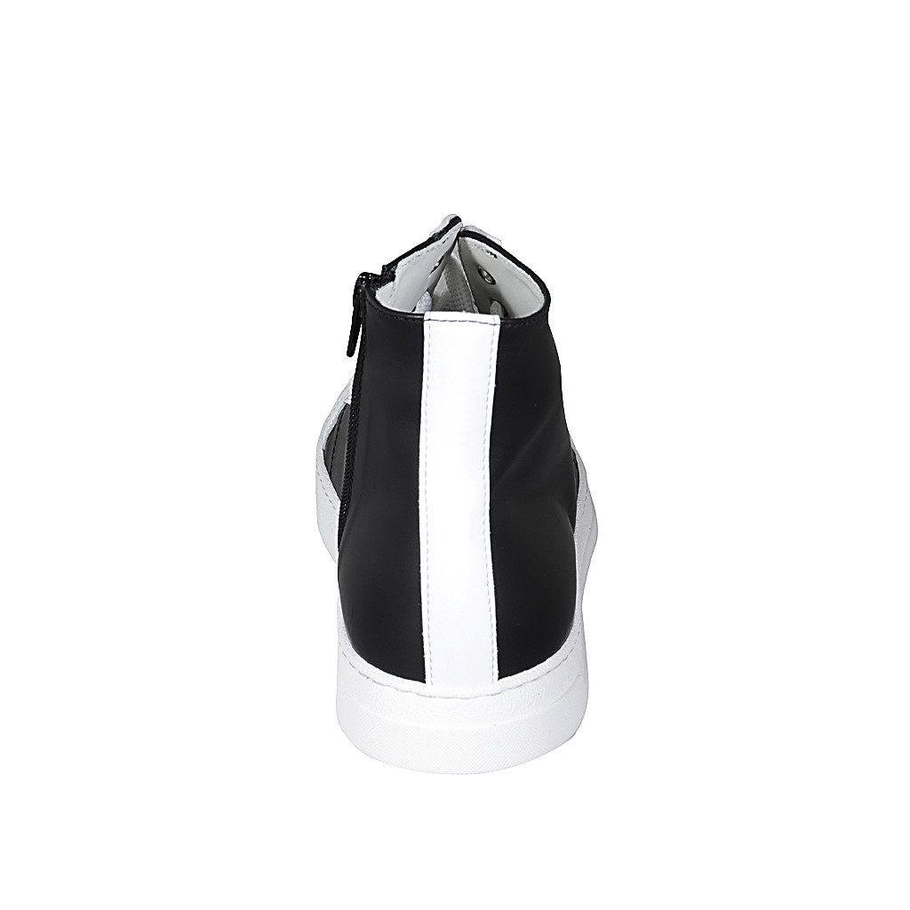Woman's laced shoe with zipper and removable insole in black and white leather wedge heel 3