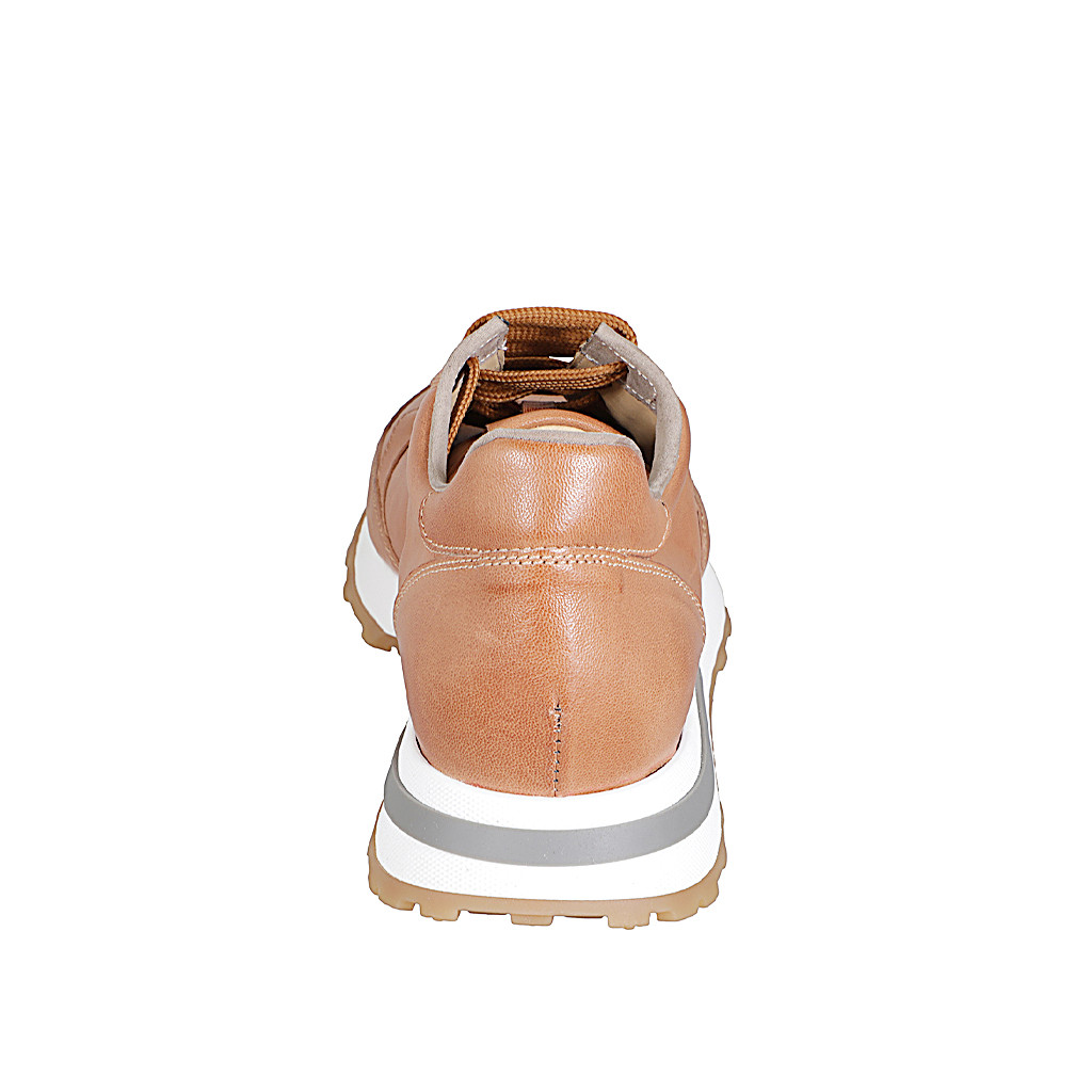 Woman's laced sneaker with removable insole in brown leather wedge 3