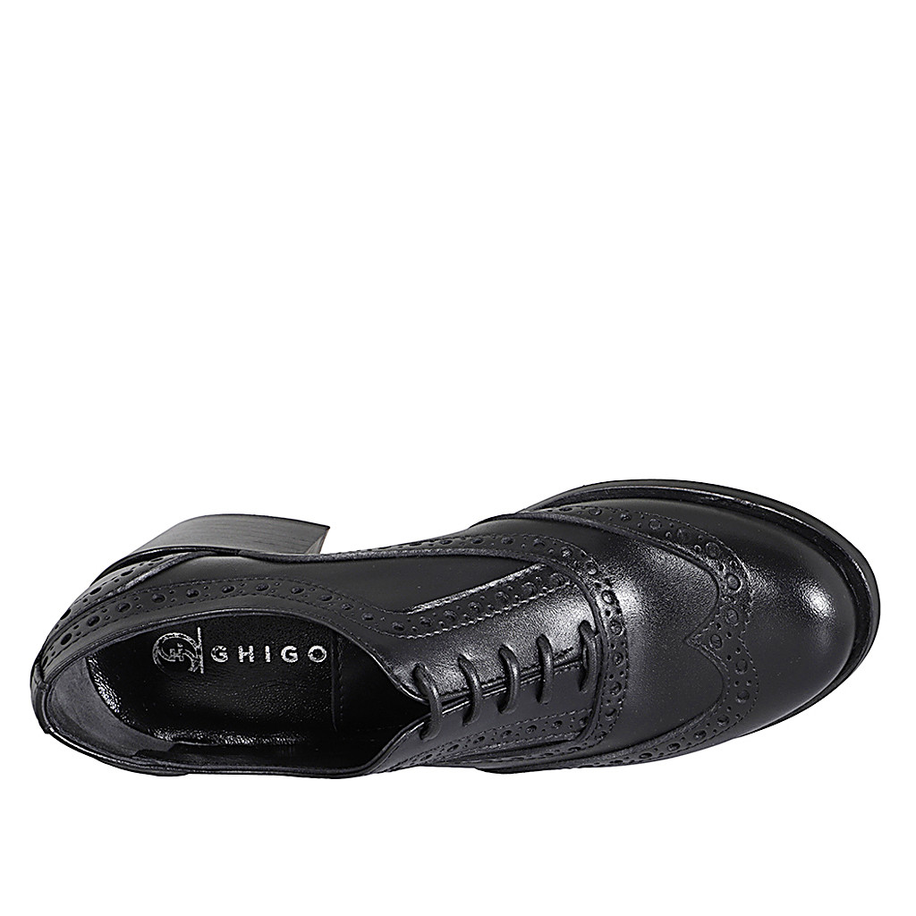 Woman's ballerina shoe with captoe and bow in blue leather heel 2