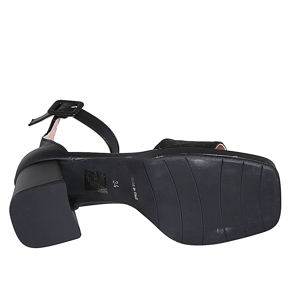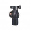 Woman's laced ankle boot with zipper, studs and buckles in black leather heel 3