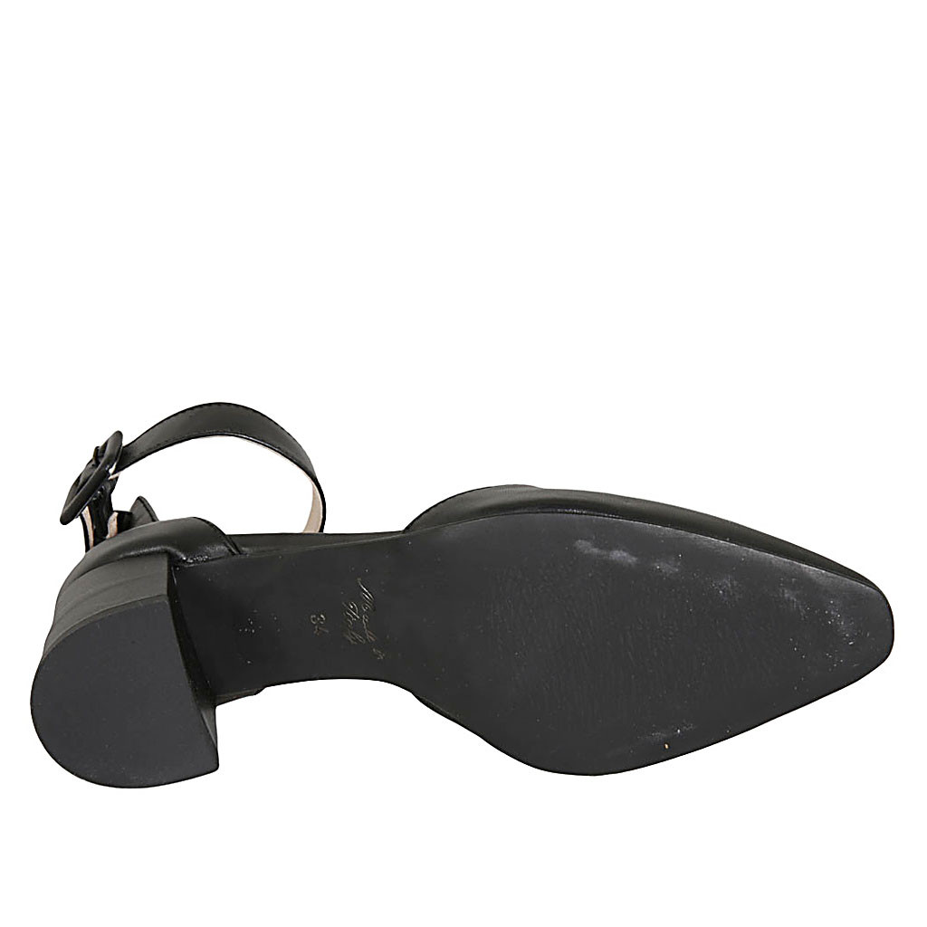 Woman's pointy open shoe with strap and elastic band in black leather heel 5