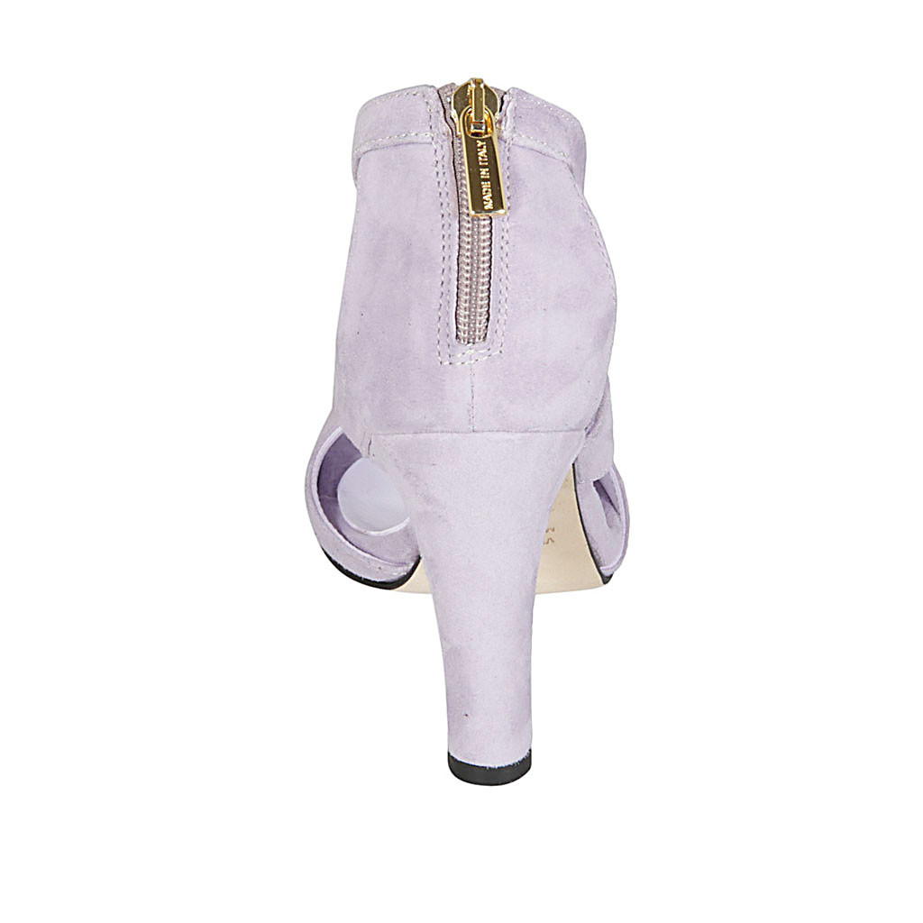 Woman's open shoe with zipper in wisteria purple suede heel 10