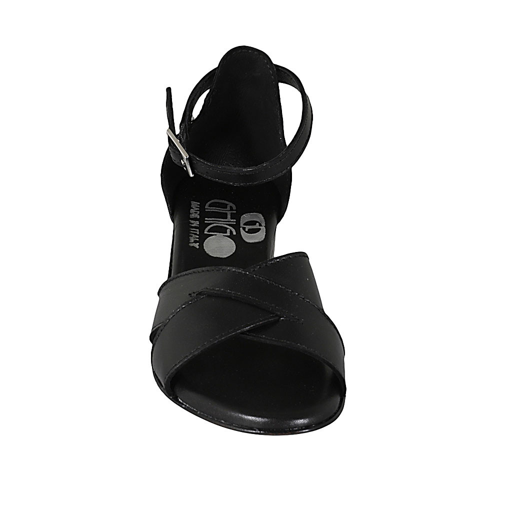 Woman's ankle boot with zipper in black printed suede and patent leather heel 9