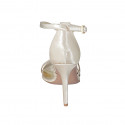 Woman's open shoe with crossed strap in platinum satin and leather heel 9
