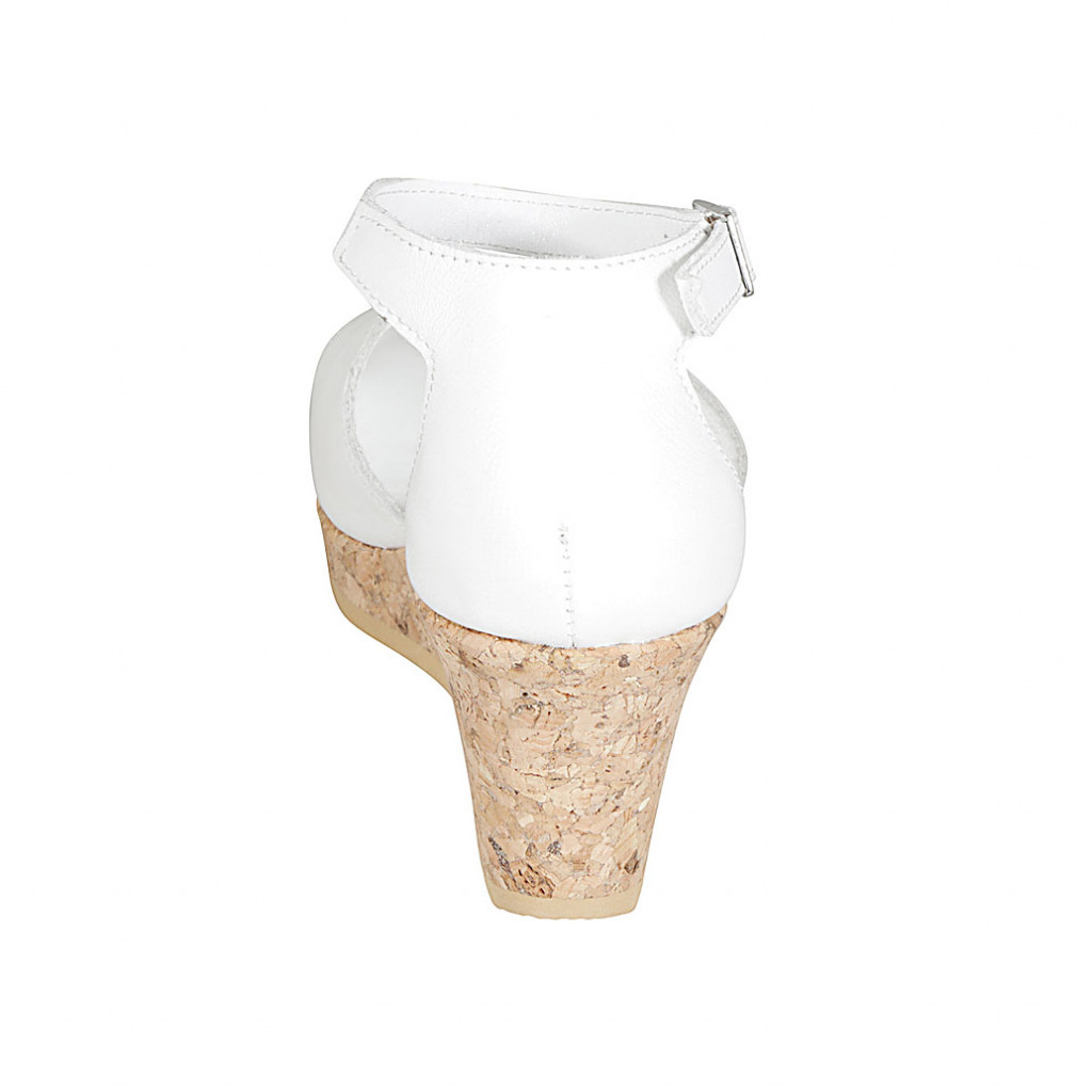 Woman's open shoe with strap and platform in white leather wedge heel 7