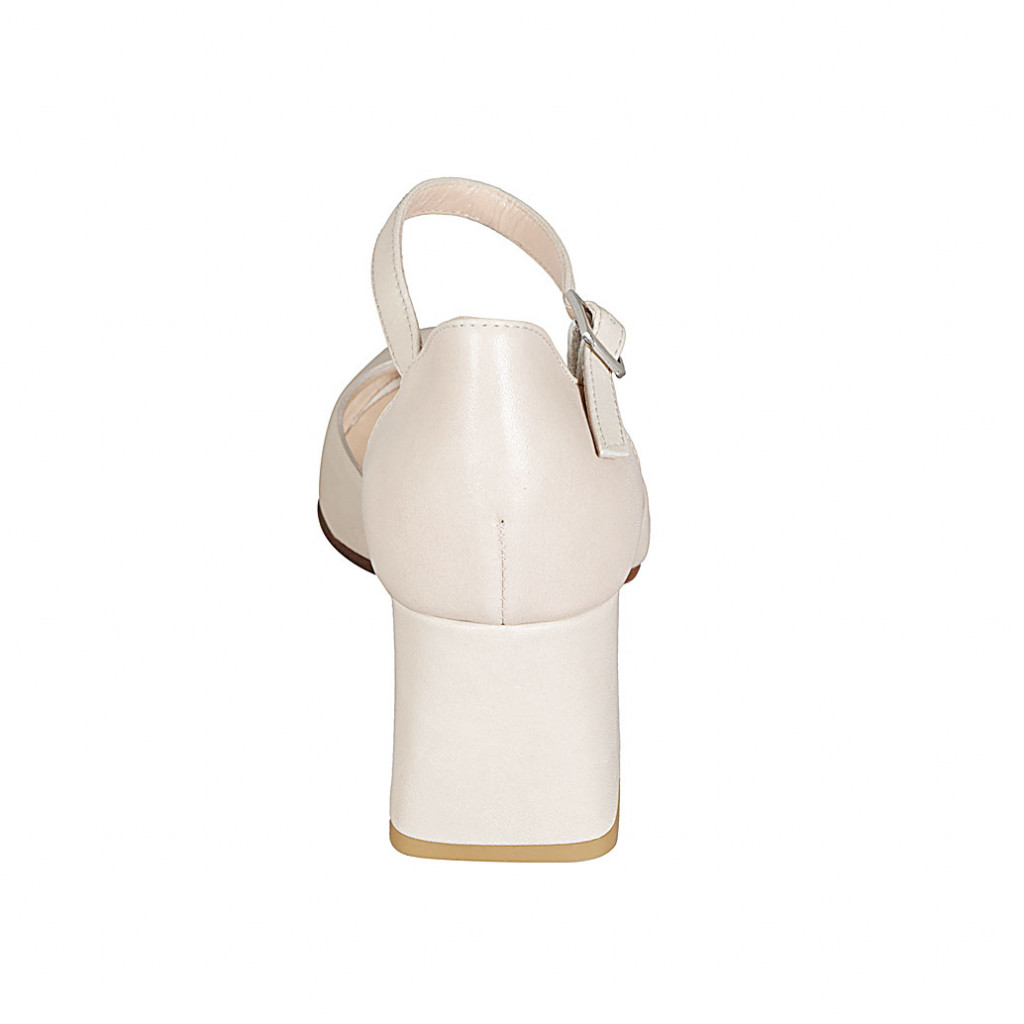 Woman's open shoe with rounded tip and strap in light beige leather heel 6