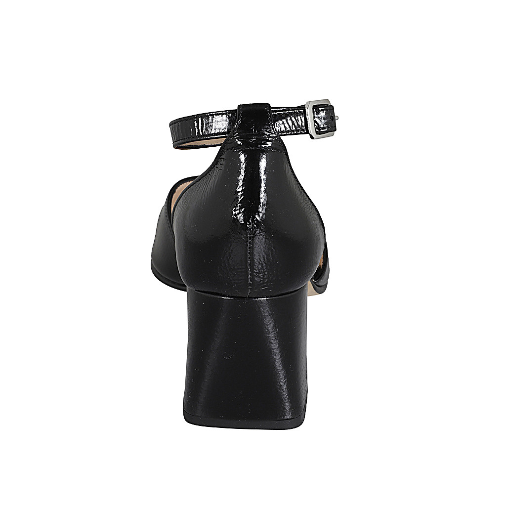 Woman's ballerina shoe with captoe and bow in blue leather heel 2