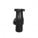 Woman's open shoe with strap in black leather and black and white raffia heel 7