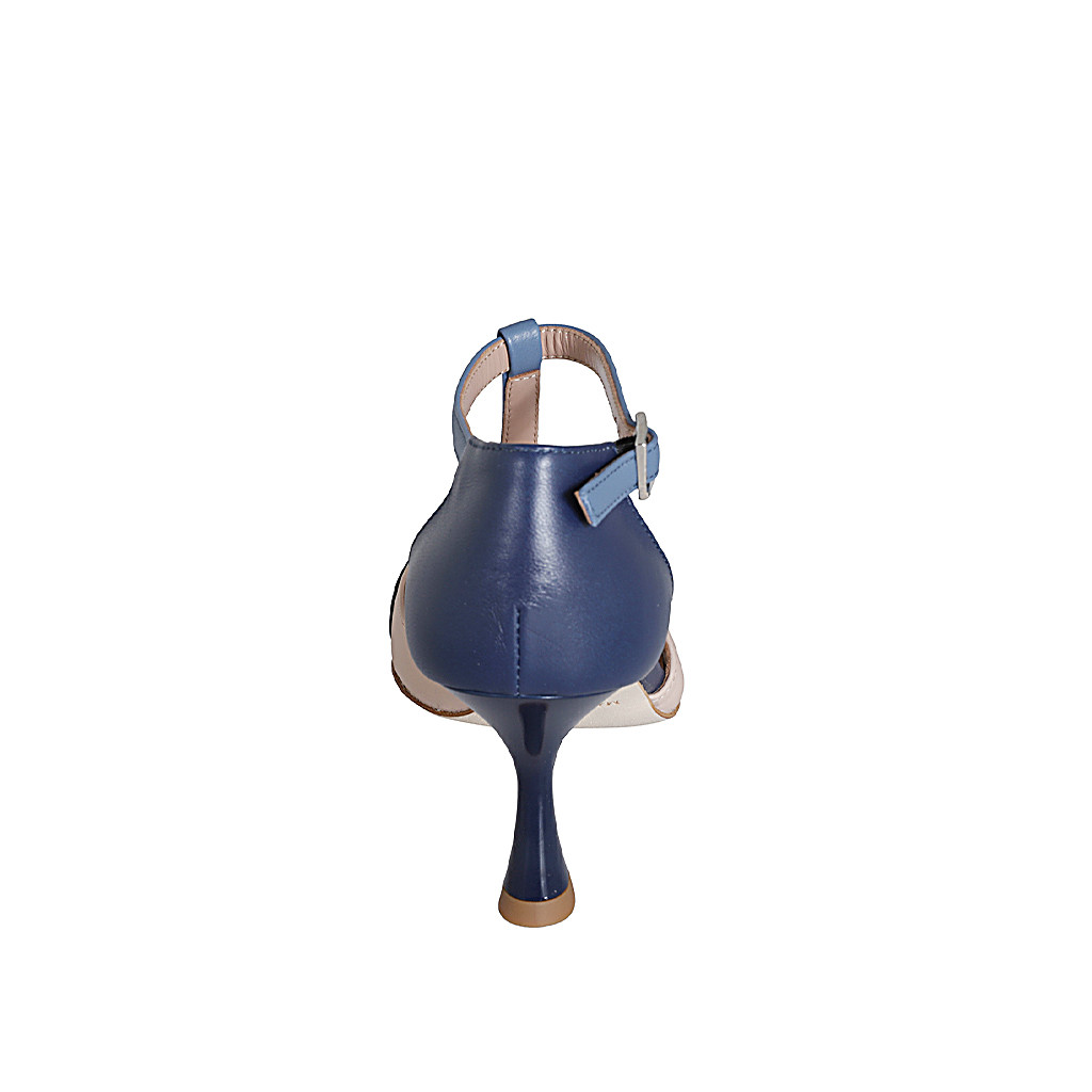 Woman's pointy boot with zipper and elastic band in black leather heel 2