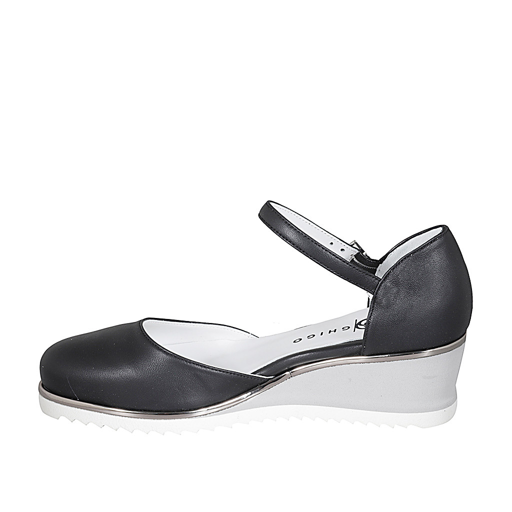 Woman's open shoe with strap in white leather heel 2