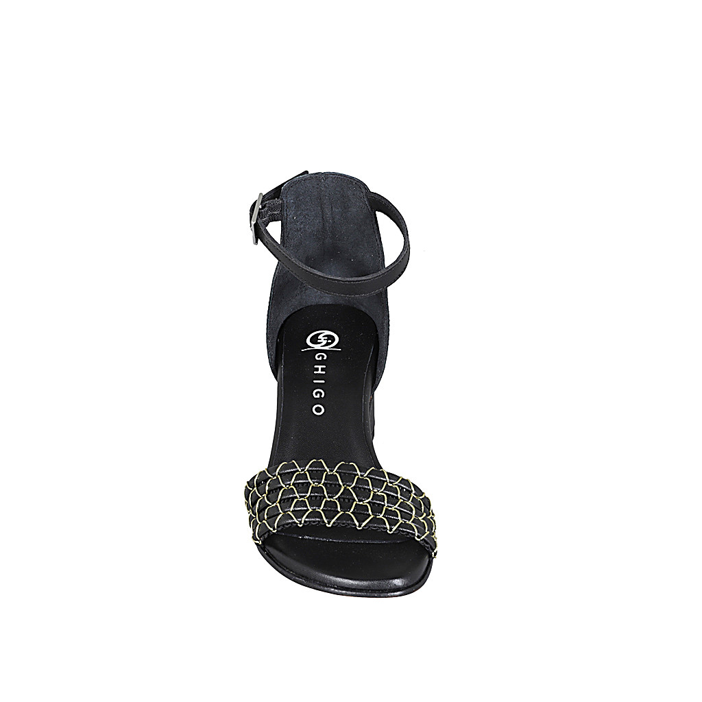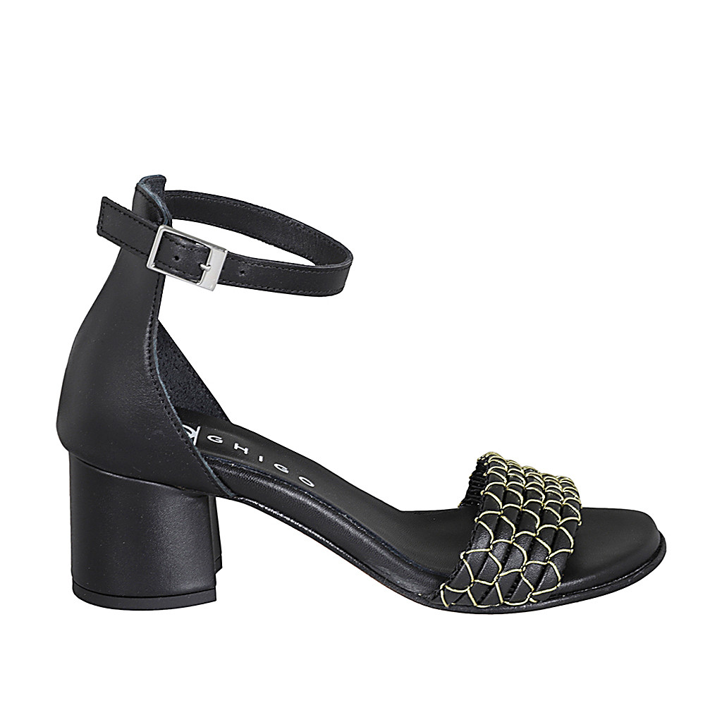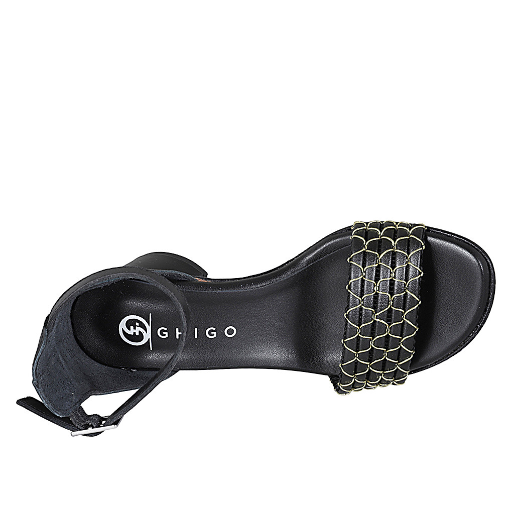 Woman's open shoe with strap and platform in black patent leather wedge heel 9