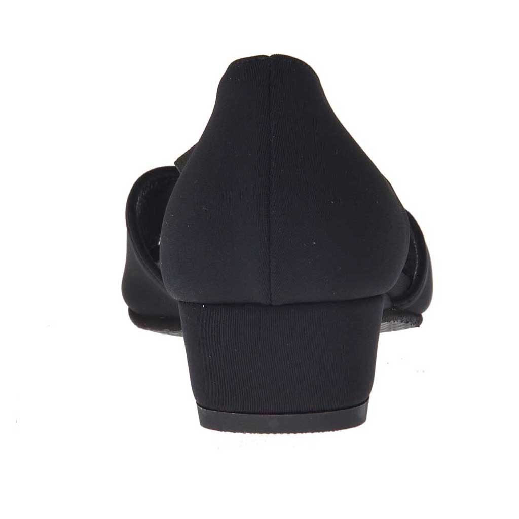 Woman's open shoe with elastic band and metallic ring in black fabric heel 3