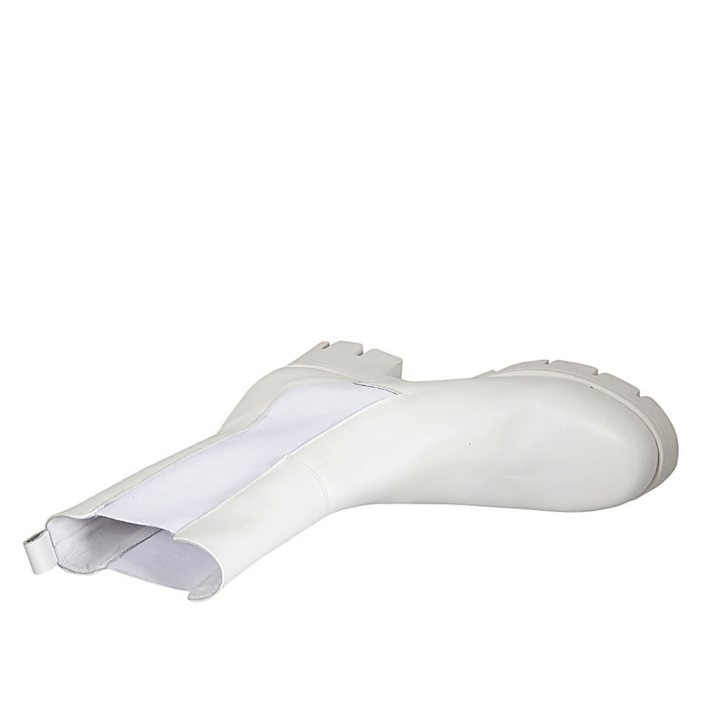 Woman's knee-high boot in black elastic material and leather with zipper and platform heel 10