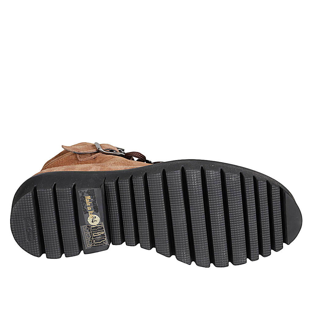 Woman's laced ankle boot with buckle in cognac brown suede heel 4