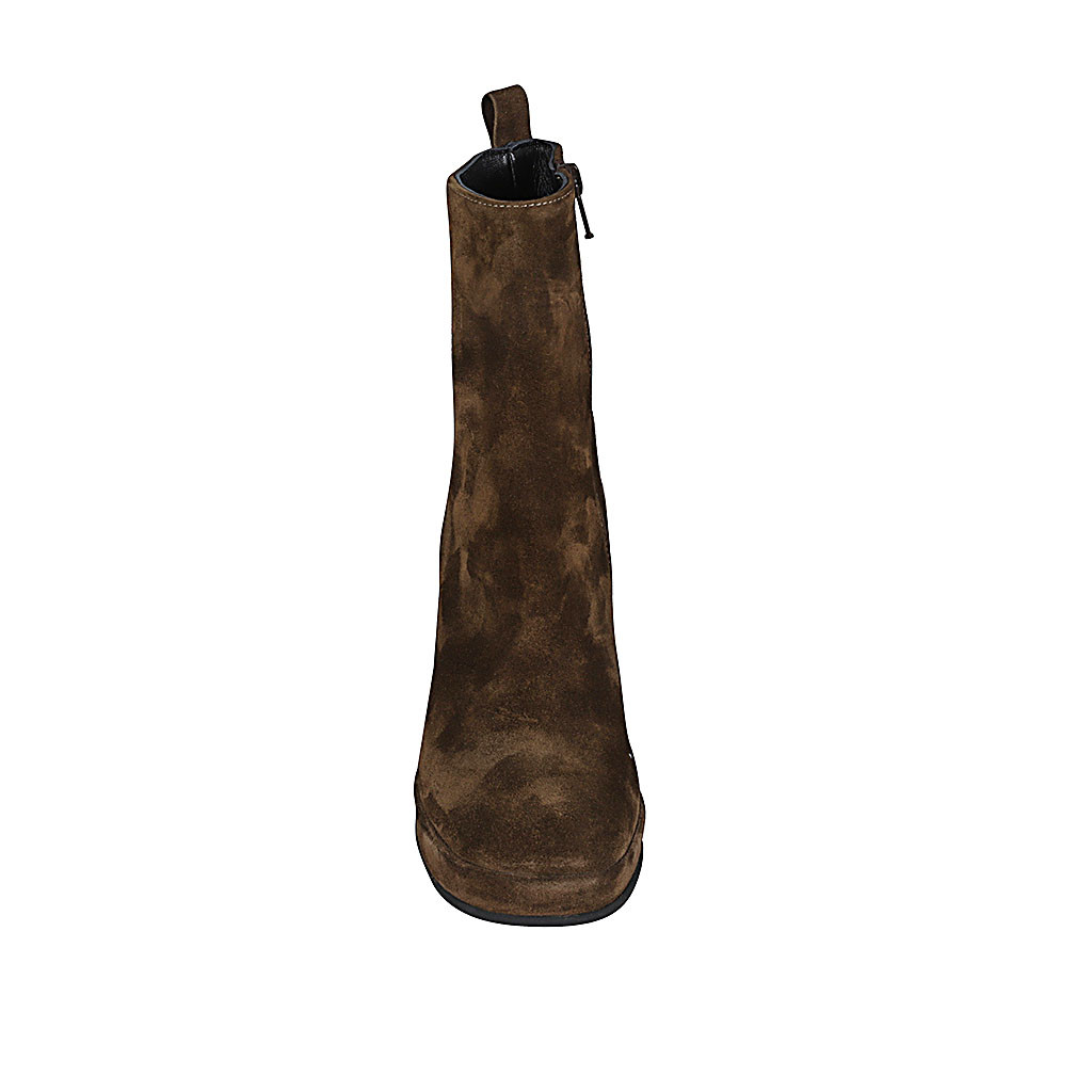 Woman's ankle boot with zipper and platform in brown suede heel 9