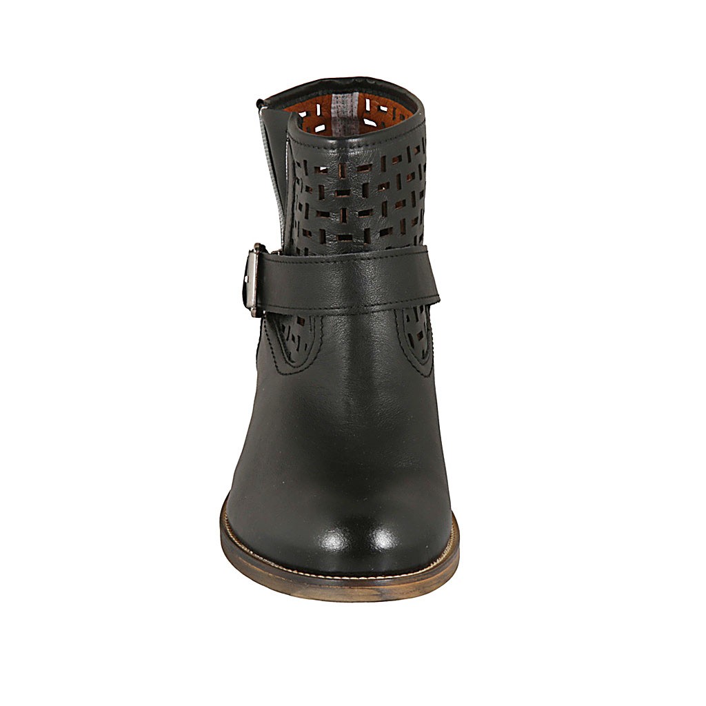 Woman's slingback with rounded tip and accessory in cognac brown leather heel 4