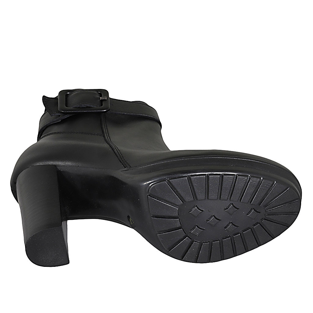 Woman's mocassin with accessory and rhinestones in black leather and suede heel 4