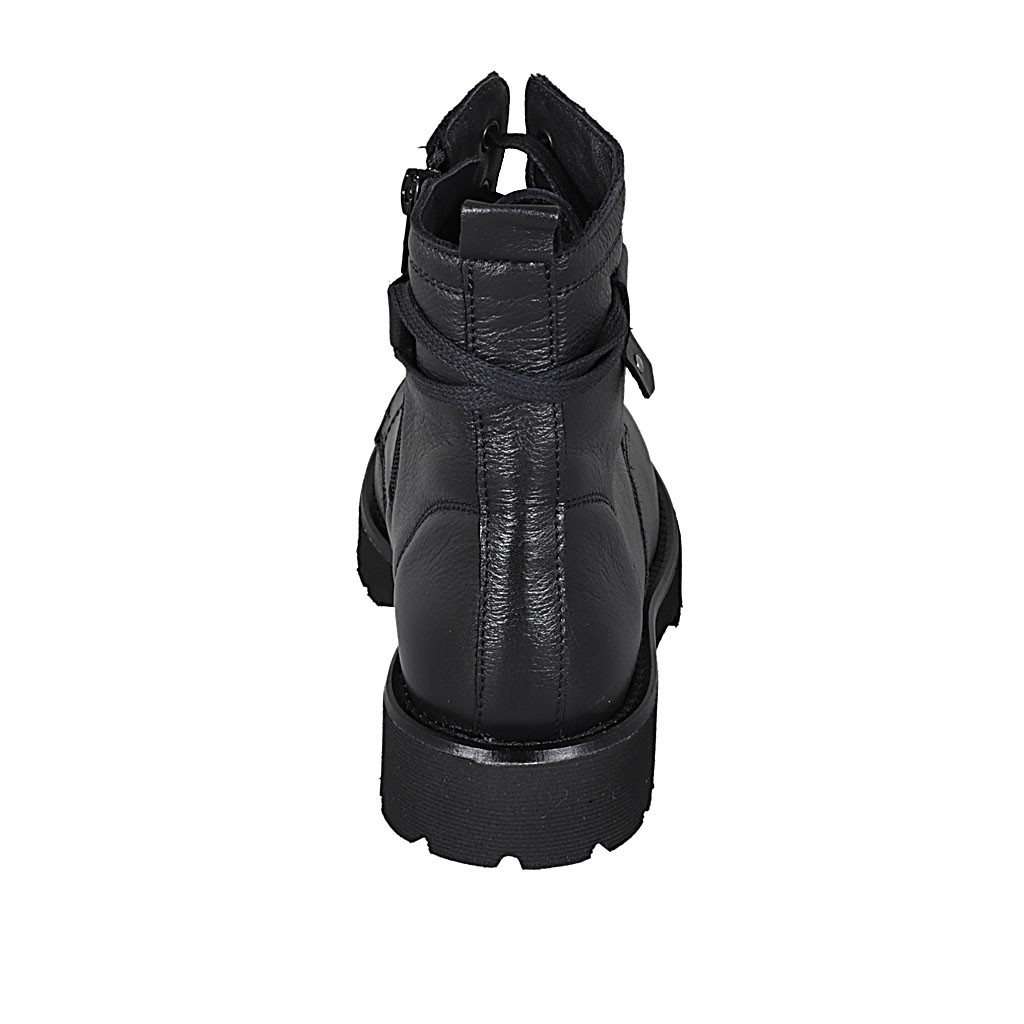 Woman's laced ankle boot with zipper, elastic bands and buckles in cognac brown leather heel 3