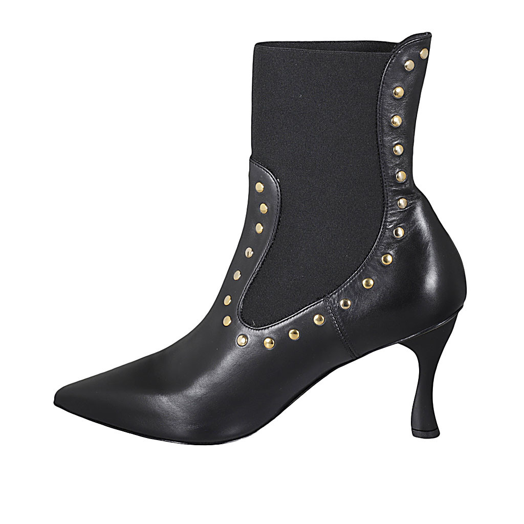 Woman's high and pointy ankle boot with elastic bands in cognac brown suede heel 5